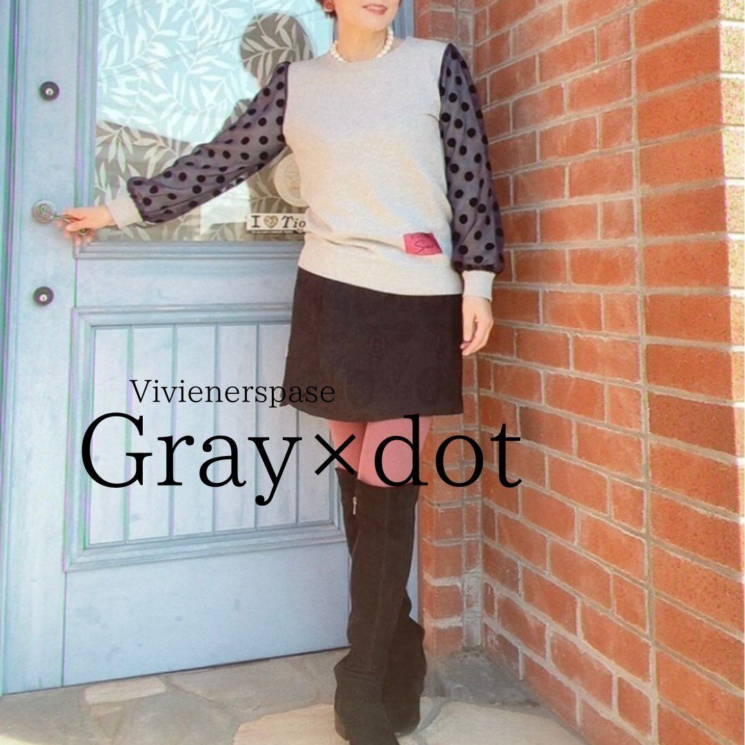 グレーベースに、袖に可愛らしいドット柄のチュール素材が施されています。